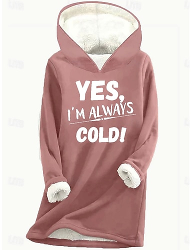 Жен. Толстовка с капюшоном и пуловером Графика Буквы Теплый На каждый день Шерпа Флис Длинный рукав Капюшон Длинные топы Для улицы На каждый день Повседневные С принтом