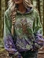 Жен. Толстовки Цветочный принт Графика Винтаж На каждый день Длинный рукав Вырез под горло Круглый вырез Обычные топы Для улицы На каждый день Повседневные С принтом Темно-зеленый Весна Осень Зима