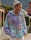 Женская 3D печать винтажного бохо худи патчворк худи свитшот цветочный пуловер свитшот цветочный винтажный графический теплый активный винтажный с длинными рукавами стритстайл повседневный розовый