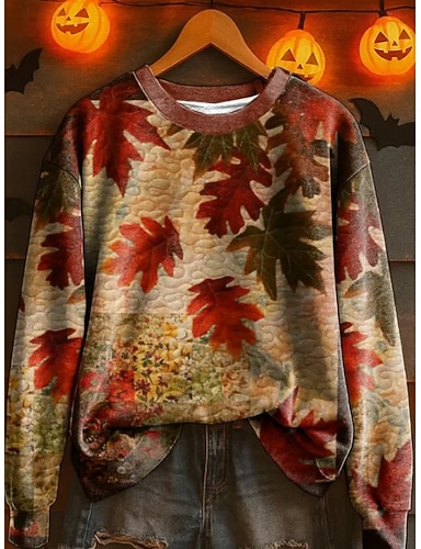 Жен. Пуловер Толстовка Цветочный принт Графика Мода На каждый день Длинный рукав Вырез под горло Обычные топы Для улицы На каждый день Повседневные С принтом Каштановый Оранжевый Коричневый Цвет хаки