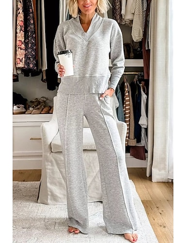 Жен. Теплый Повседневные Комплекты из двух предметов Спортивный костюм Комплекты брюк Длинный рукав Вырез под горло Графика Геометрический принт Буквы Кулиска С принтом Повседневные