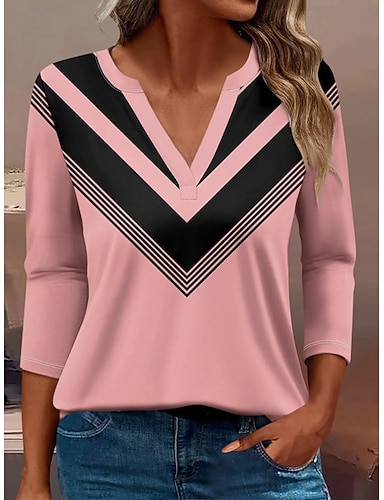 Жен. Футболка Графика Геометрический принт Винтаж Стиль Классика Длинный рукав V-образный вырез Зубчатая шея Обычные топы Повседневные С принтом Розовый Синий Лиловый Зеленый Весна Осень Зима