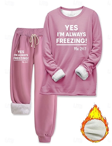 Жен. Элегантный стиль Теплый Мода Комплекты из двух предметов Спортивный костюм Комплекты брюк Длинный рукав Широкий, стянутый у запястья Вырез под горло Графика Буквы С принтом