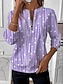Жен. Футболка Цветочный принт Графика Элегантный стиль Стиль На каждый день Рукав 3/4 V-образный вырез Обычные топы Повседневные С принтом Розовый Синий Лиловый Бежевый Лето