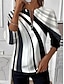 Жен. Футболка Графика Полоски Элегантный стиль Винтаж Стиль Рукав 3/4 V-образный вырез Обычные топы Повседневные С принтом Темно синий Бежевый Светло-синий Лето