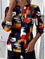Женская футболка с длинным рукавом круглый вырез длинная туника графическая геометрическая цвет-блок винтажный стильный классический круглый вырез обычные топы повседневный принт зеленый осень