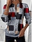 Жен. Футболка Графика Геометрический принт Контрастных цветов Винтаж Стиль Классика Длинный рукав Вырез под горло Круглый вырез Обычные топы Повседневные С принтом Красный Лето Весна Осень