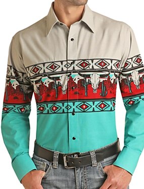 Муж. Этно Графические принты Винтаж Рубашка Западная рубашка Ковбойская рубашка Длинный рукав Мода Уличный стиль Оригинальный рисунок на открытом воздухе Повседневные Наступила зима Отложной