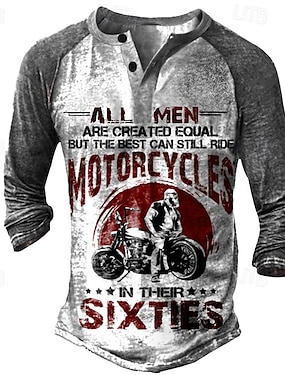 Муж. Футболка Рубашка Хенли Графические принты Мотоцикл Хенли Желтый Синий Хаки Серый на открытом воздухе Повседневные Длинный рукав Кнопка вниз С принтом Одежда Стиль Легкие Винтаж Дышащий