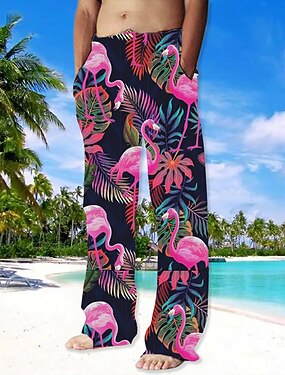 Муж. Штаны Летние штаны Пляжные штаны Кулиска Эластичная талия Прямая нога Животное Фламинго Графические принты Комфорт Повседневные Праздники Уличный стиль Гавайский Розовый Красный
