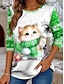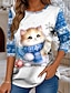 Новогодняя тематика Жен. Футболка Графика Кот Рождество Винтаж Мода Стиль Длинный рукав Вырез под горло Обычные топы Повседневные выходные С принтом Розовый Красный Синий Зеленый Осень Зима
