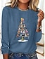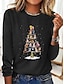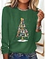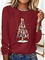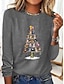 Новогодняя тематика Жен. Футболка Графика Кот Новогодняя ёлка Винтаж Мода Стиль Длинный рукав Вырез под горло Обычные топы Повседневные выходные С принтом Черный Красный Синий Зеленый Серый Осень Зима