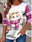 Жен. Футболка Графика Животное Кот Винтаж Симпатичные Стиль Стиль Длинный рукав Вырез под горло Обычные топы Повседневные С принтом Розовый Синий Лиловый Зеленый Весна Осень Зима