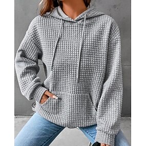 Женская фактурная толстовка с вафельным принтом, блузка, простая, современная, повседневная, с длинным рукавом, с капюшоном, обычная, для отдыха, на выход, с карманом, черная, белая, серая, летняя