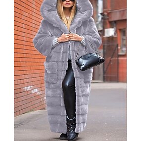 Жен. Зимнее пальто Искусственное меховое пальто Сохраняет тепло Удобный Меха и кожа Мода На каждый день Полотняное плетение Отпуск Для улицы Повседневные На каждый день Длинная Капюшон Стандартный