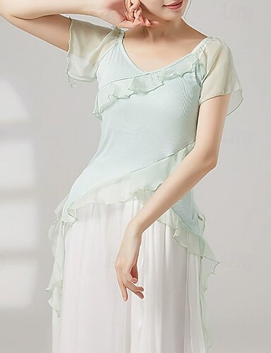 Латино Бальные танцы Кофты Вышивка Рюши / сборки Пайетки Жен. Учебный Выступление С короткими рукавами Сетка Пайетки Молочное волокно