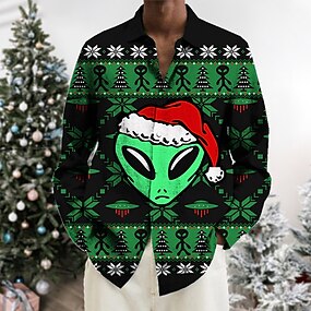 рождество мужские рождественские сцены принтованные рубашки рубашки графические принты снежинка отложной воротник винно-голубой зеленый 3D принт уличный повседневный длинный рукав на пуговицах принт