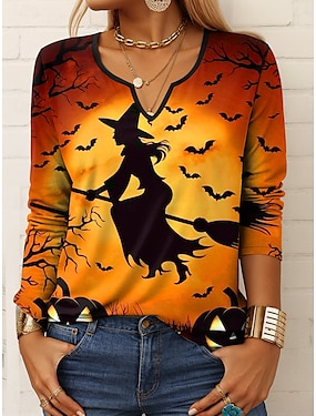 Хэллоуин Женская Футболка Ведьма Длинный Рукав Омбре Графика Геометрическая Винтажный Стильный Классический Длинный Рукав С Выемкой Обычные Топы Повседневная Печать Фиолетовый Оранжевый Зеленый Весна