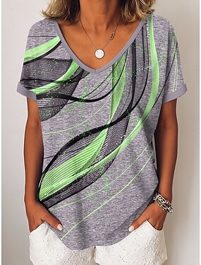 Жен. Футболка Графика Абстракция Винтаж Стиль Современное С короткими рукавами V-образный вырез Обычные топы Повседневные выходные Одежда для отпуска С принтом Синий Лиловый Золотой Зеленый Лето