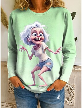 Жен. Футболка Графика Мультипликация Градиент Винтаж Стиль Классика Длинный рукав Вырез под горло Обычные топы Повседневные С принтом Розовый Синий Лиловый Зеленый Весна Осень Зима
