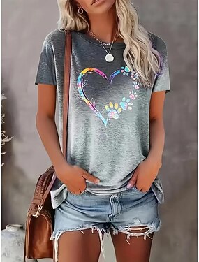 женская футболка повседневная принт короткий рукав обычные топы круглый вырез повседневный серый летний