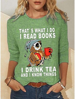 Женская футболка с длинным рукавом сова буквенная мода длинный рукав футболка с круглым вырезом повседневные топы принт на каждый день выходные черный красный синий зеленый хаки весна и осень весна