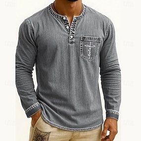 Муж. Рубашка Хенли Футболка Длинный рукав Полотняное плетение Один цвет Винтаж Мода Оригинальный рисунок Контрастное кружево Хенли Для улицы Повседневные На выход Лето Весна Зима
