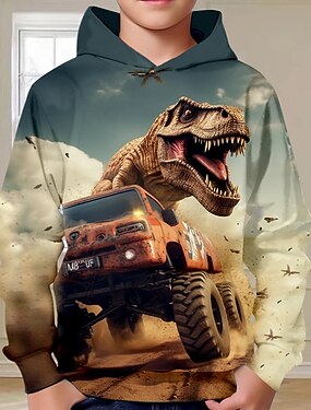 Мальчики 3D Динозавр Толстовка Pullover Длинный рукав 3D печать Осень Зима Мода Уличный стиль Круто Дети 3-12 лет на открытом воздухе Повседневные Стандартный