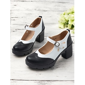 Жен. Обувь на каблуках Ретро Мэри Джейн Лолита Для вечеринок Офис Повседневные Контрастных цветов Цветы Блочная пятка Круглый носок Элегантный стиль Винтаж Симпатичные Стиль Полиуретан С пряжкой