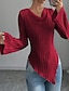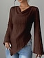 Жен. Рубашка Сплошной цвет Полотняное плетение Элегантный стиль Стиль Классический Длинный рукав V-образный вырез Зубчатая шея Обычные топы Офис Повседневные Праздники Оборки