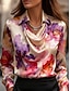 Жен. Рубашка Цветочный принт Элегантный стиль Стиль На каждый день Длинный рукав Вырез-хомут Обычные топы Офис Повседневные Праздники С принтом Драпировка Розовый Весна Осень