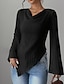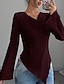 Жен. Elegant Нарядный Сатин / атлас Блуза Сплошной цвет Классический На каждый день Длинный рукав Фонарь рукавом Асимметричный вырез Обычные топы Офис Повседневные Праздники Рюши Пэчворк