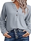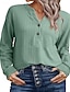 Жен. Рубашка Рубашки из хлопка и льна Текстурная блузка Блуза Полотняное плетение Современное На каждый день Длинный рукав V-образный вырез Обычные топы Повседневные Праздники На выход Пуговицы