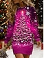 Новогодняя тематика Жен. Мини-платье Платье прямого кроя Отпуск На каждый день Повседневные Праздники Стандартный Графика Новогодняя ёлка Длинный рукав Вырез под горло Красный Синий Лиловый Зеленый