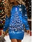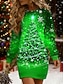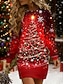 Жен. Мини-платье Платье-футболка Платье прямого кроя Отпуск На каждый день Повседневные Праздники Свидание Стандартный Графика Новогодняя ёлка Длинный рукав Вырез под горло