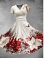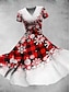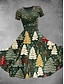 Новогодняя тематика Жен. Платье средней длины Платье A-силуэта Платье с расклешенной юбкой Для вечеринки На каждый день Повседневные Праздники Стандартный Графика Новогодняя ёлка С короткими рукавами