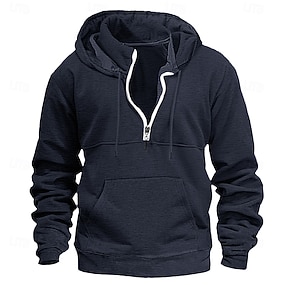 Муж. Толстовка Винный Темно синий Зеленый Хаки Светло-серый Капюшон Каждый Передний карман Четверть молния Повседневные Праздники На выход Полиэстер Уличный стиль На каждый день баварский Осень Зима