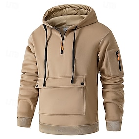 Муж. Толстовка Толстовка с капюшоном на молнии Черный Военно-зеленный Темно синий Хаки Светло-серый Капюшон Полотняное плетение Карман Четверть молния Для занятий спортом Повседневные Праздники