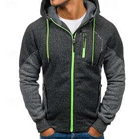 Муж. Толстовка Толстовка с капюшоном на молнии Черный Военно-зеленный Темно синий Хаки Светло-серый Капюшон Полотняное плетение Карман Кулиска Для занятий спортом Повседневные Праздники Полиэстер