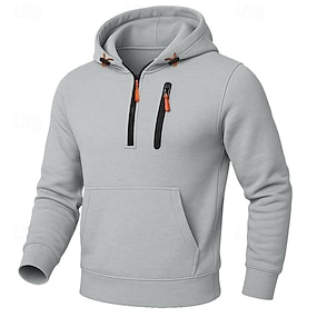 Муж. Толстовка Флис Толстовка с капюшоном на молнии Черный Военно-зеленный Серый Капюшон Полотняное плетение Кулиска Четверть молния Для занятий спортом Повседневные Праздники Полиэстер