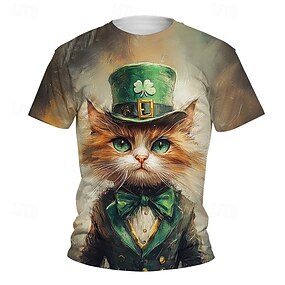 Святой Патрик Мальчики 3D Графика Кот Футболка С короткими рукавами Лето Весна Мода Классический Дети 4-12 лет Вырез под горло на открытом воздухе Повседневные Стандартный