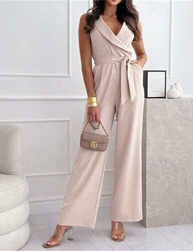 Жен. Нормальная Комбинезоны Элегантный стиль Сплошной цвет Без рукавов Прямой силуэт V-образный вырез Карман Повседневные Стандартный Черный Белый Пурпурный Лето