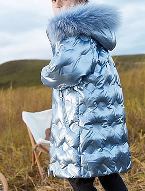 Дети Девочки Пух Детская куртка-пуховик Активный Молния Школа Пальто Верхняя одежда 3-12 лет Зима Светло-синий Арбузный белый с оттенком