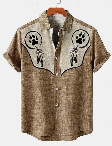 Муж. Льняная рубашка Летняя рубашка Одежда для пляжа Кнопка рубашка Этно Отпуск Повседневные Коричневый Зеленый Цвет хаки С короткими рукавами Отложной Лето Весна Одежда