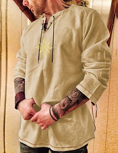 Муж. Рубашка Льняная рубашка Стиль Викингов Поповер Рубашка Летняя рубашка Одежда для пляжа Сплошной цвет Отпуск Для улицы Белый + оранжевый Белый + зеленый Зеленый + оранжевый Белый + белый