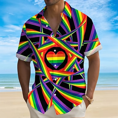Муж. Радужный ЛГБТ Гордость Рубашка Летняя рубашка Кнопка рубашка С короткими рукавами Мода Повседневная Праздники Уличная одежда Лето Весна Отложной 3D печать рубашки с воротником Передний карман