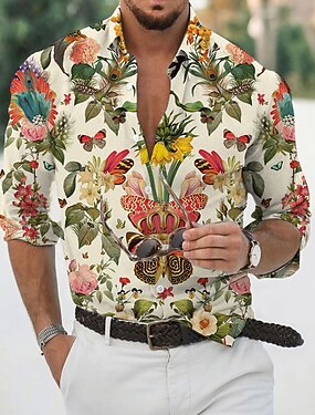 Муж. Цветочный принт Рубашка Кнопка рубашка Длинный рукав Мода Оригинальный рисунок На каждый день на открытом воздухе Повседневные Праздники Осень Зима Воротничок С принтом Кнопка вниз