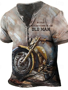 Муж. Графика Мотоцикл Рубашка Хенли С короткими рукавами 3D печать Мода Оригинальный рисунок Удобный на открытом воздухе Повседневные Весна лето Синий Зеленый Военно-зеленный Кофейный Хенли