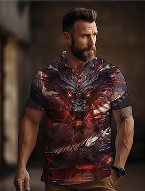 Муж. Дракон Рубашка для гольфа С короткими рукавами Футболки поло Рубашки с воротником На каждый день Веселая Одежда для отпуска Наряды для вечеринок Пуговицы 3D печать Лето Желтый Винный Красный