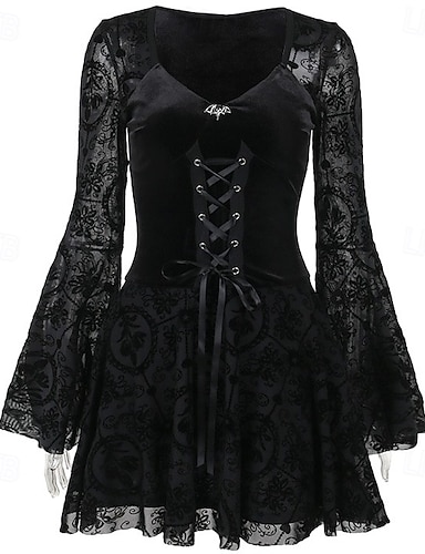 Готика Мини Платья Летучая мышь ведьма Кружева Бархат Корсет Цветочный принт Маскарадный костюм Жен. фантазия Хэллоуин Карнавал Выступление Для вечеринок Взрослые Платье